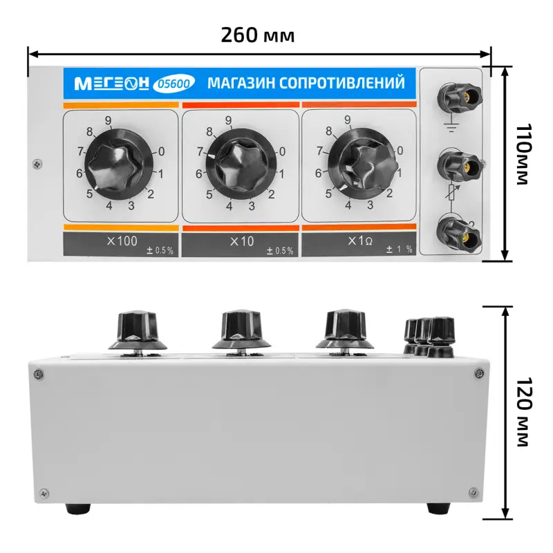 Магазин сопротивлений МЕГЕОН 05600 представляет собой высококачественное измерительное устройство, предназначенное для точной настройки и калибровки электрических цепей. Его диапазон устанавливаемого сопротивления варьируется от 1 Ом до 999 Ом, что делает этот прибор универсальным инструментом для различных электротехнических задач. Удобство использования обеспечивается шагом установки в 1 Ом, что позволяет пользователю с высокой точностью задавать необходимые значения сопротивления.