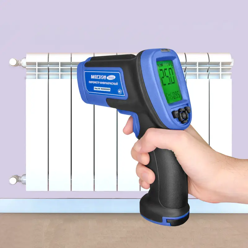 Пирометр МЕГЕОН 16660 — это современное инфракрасное устройство для бесконтактного измерения температуры, разработанное с учётом потребностей как бытовых пользователей, так и специалистов технических профессий. Прибор способен определять температуру в широком диапазоне от 200 до 1850 градусов Цельсия, что делает его универсальным решением для работы с различными поверхностями и условиями, включая охлаждённые объекты, нагревательные элементы, системы отопления и вентиляции, а также автомобильные агрегаты.